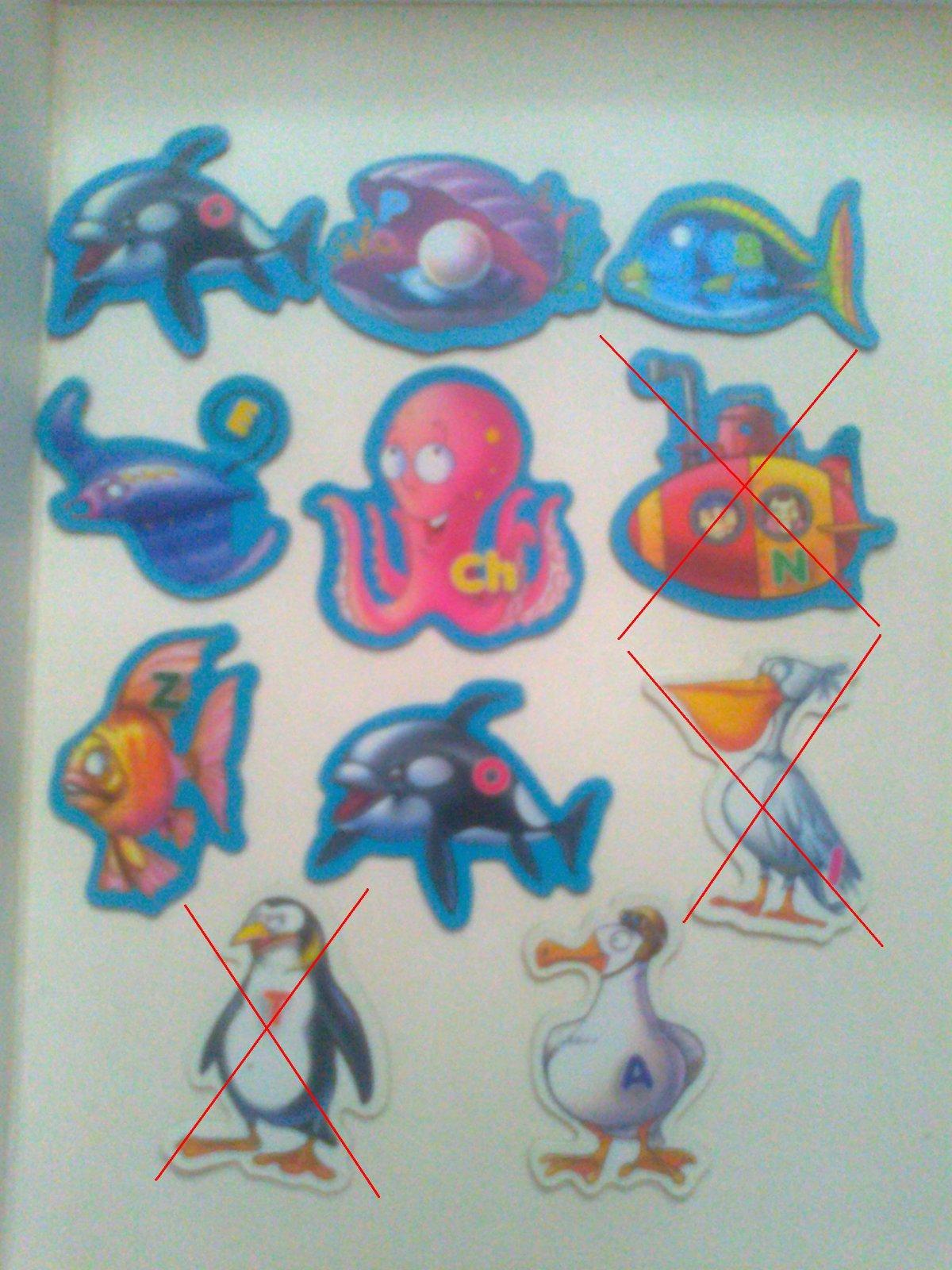 Chýbajú nám magnetky Kostíkov - Magický hrad:22- znak K, 23- Kostlivec Kosťák, 25-duch Buba