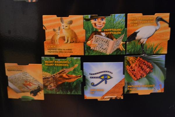 magnetky Kostíkov- Poklad pyramíd(Egypt): , 3- nápis -Kos, 6-Sfinga, 20- Žofka, 22- Nílsky okúň, .