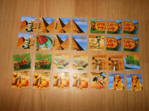 Poklad Pyramid, zhanam c. 10,11,15,17,22,26 a 28, na vymenu ponukam c. 12,14,16,18,27 a hore uvedene magnetky statov, rekordov a hrad Devin, magnetka z horaliek 🙂