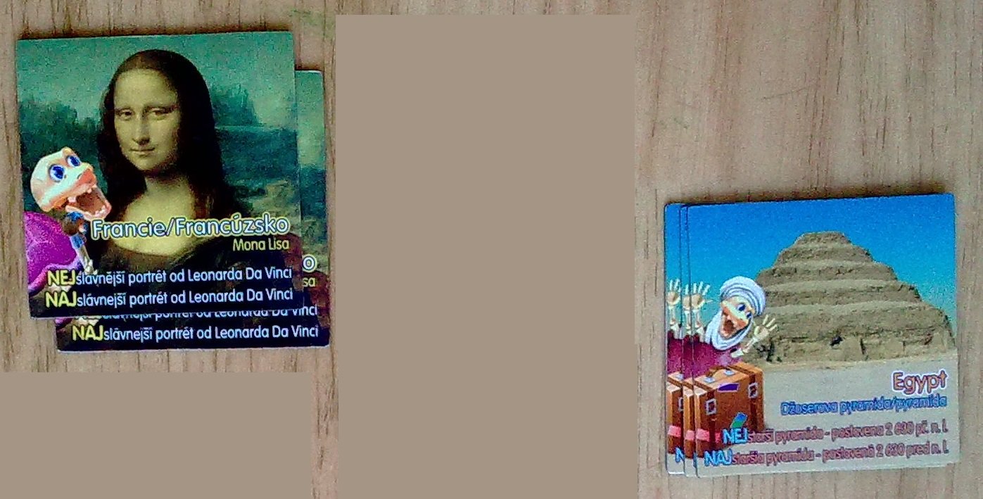 Venezuela, Taliansko - Koloseum, Taliansko - David, Taliansko - Pisa, Južná Amerika - Amazonka, Južná Amerika - Amazonský prales, Nepál, Francúzsko - Eifelova veža, Francúzsko - Mona Lisa, Dubaj, Egypt, Čína, Austrália - Veľký bariérový útes