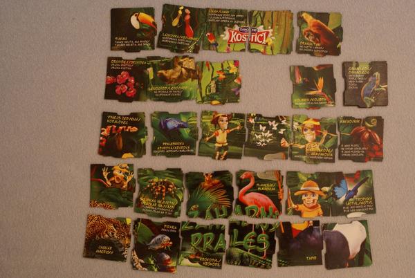 Na vymenu mame tieto duplicitne: 1 (babocka), 2 (stehlik), 6 (kostik v traktore), 7 (kobylka zelena), 8 (kostik s furikom), 9 ((hus), 10 (datel),12 (kosticka v trstine), 15 (huba stromova-chrudnik), 16 (bobor), 19 (pstruh duhovy), 21 (perlorodka), 22 (cerebla pestra)
