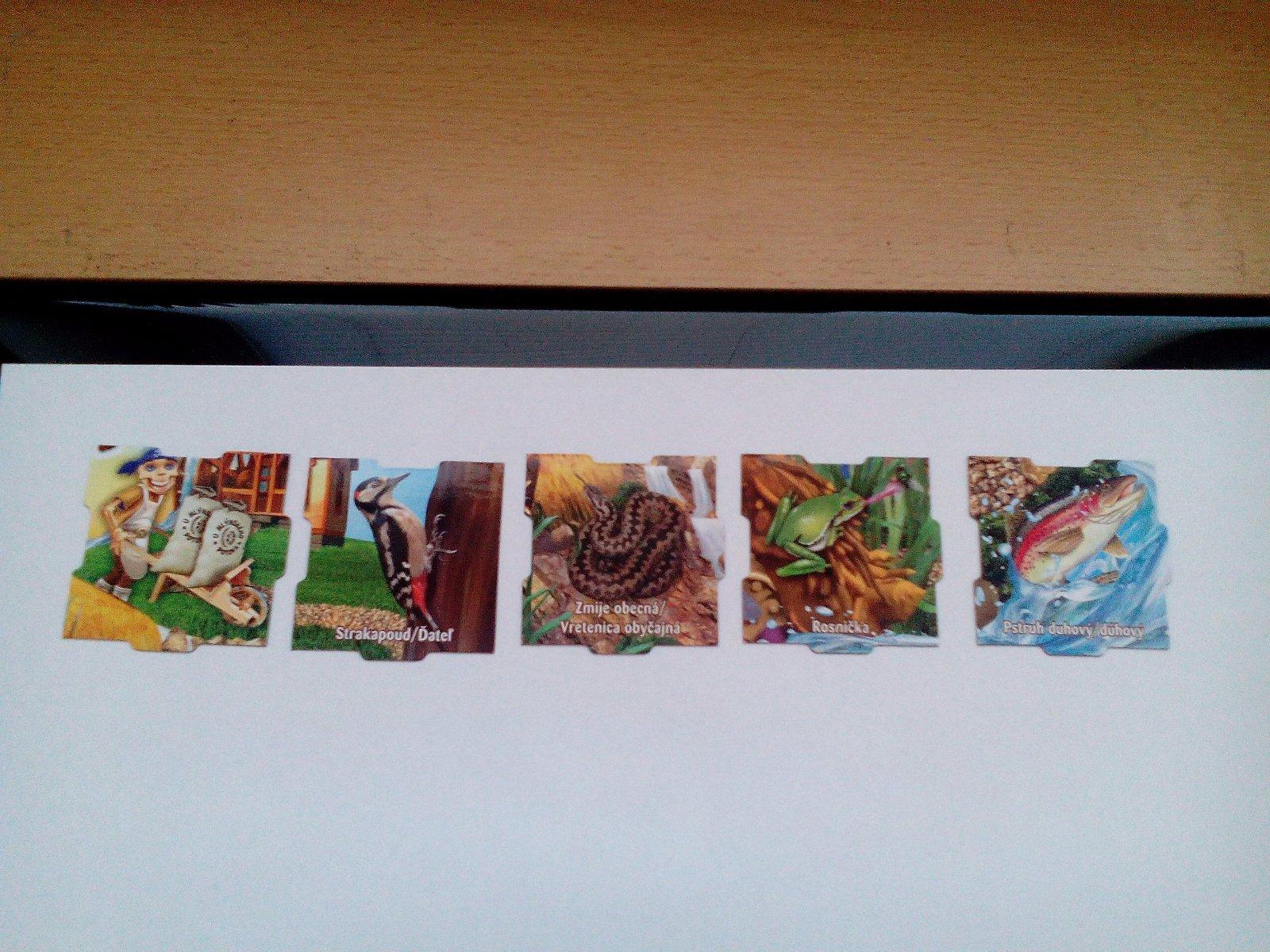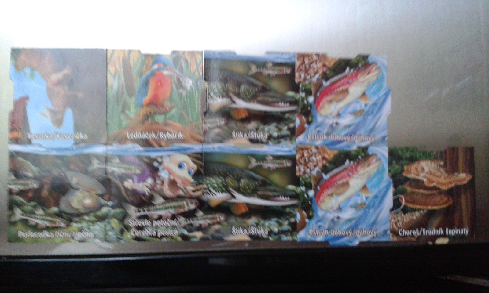 Na vymenu mame tieto duplicitne: 1 (babocka), 2 (stehlik), 6 (kostik v traktore), 7 (kobylka zelena), 8 (kostik s furikom), 9 ((hus), 10 (datel),12 (kosticka v trstine), 15 (huba stromova-chrudnik), 16 (bobor), 19 (pstruh duhovy), 21 (perlorodka), 22 (cerebla pestra)