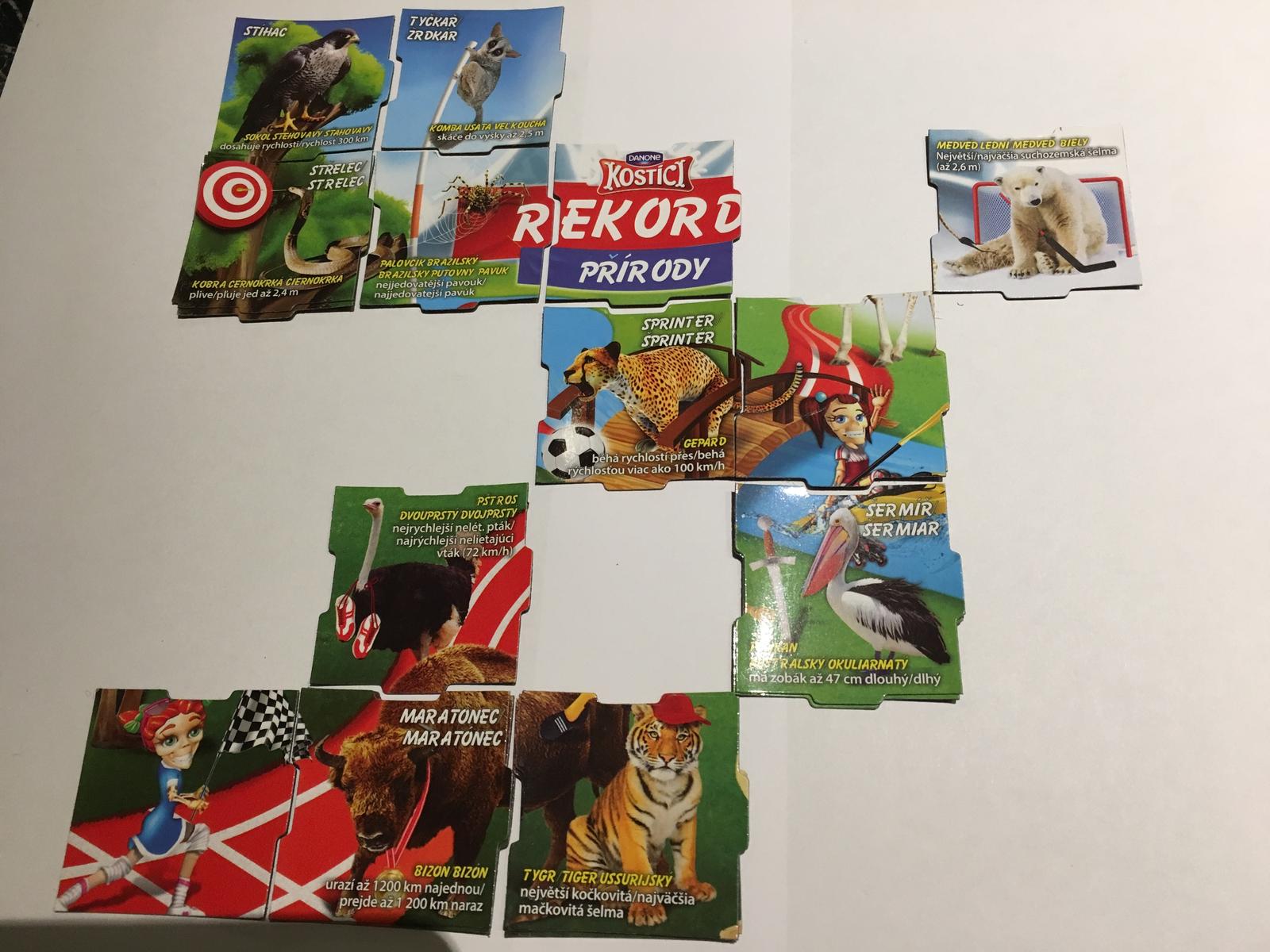 Ponukam Kostici Rekordy prirody - k dispozicii vsetky na prilozenom obrazku (bez cisel) na predaj 0,10 EUR/ks+postovne alebo vymením za chýbajúce Kostici Rekordy prirody c. 3, 11, 12, 18. BA-Ruzinov, poslem aj postou - idealne aspon 2-3 ks naraz.