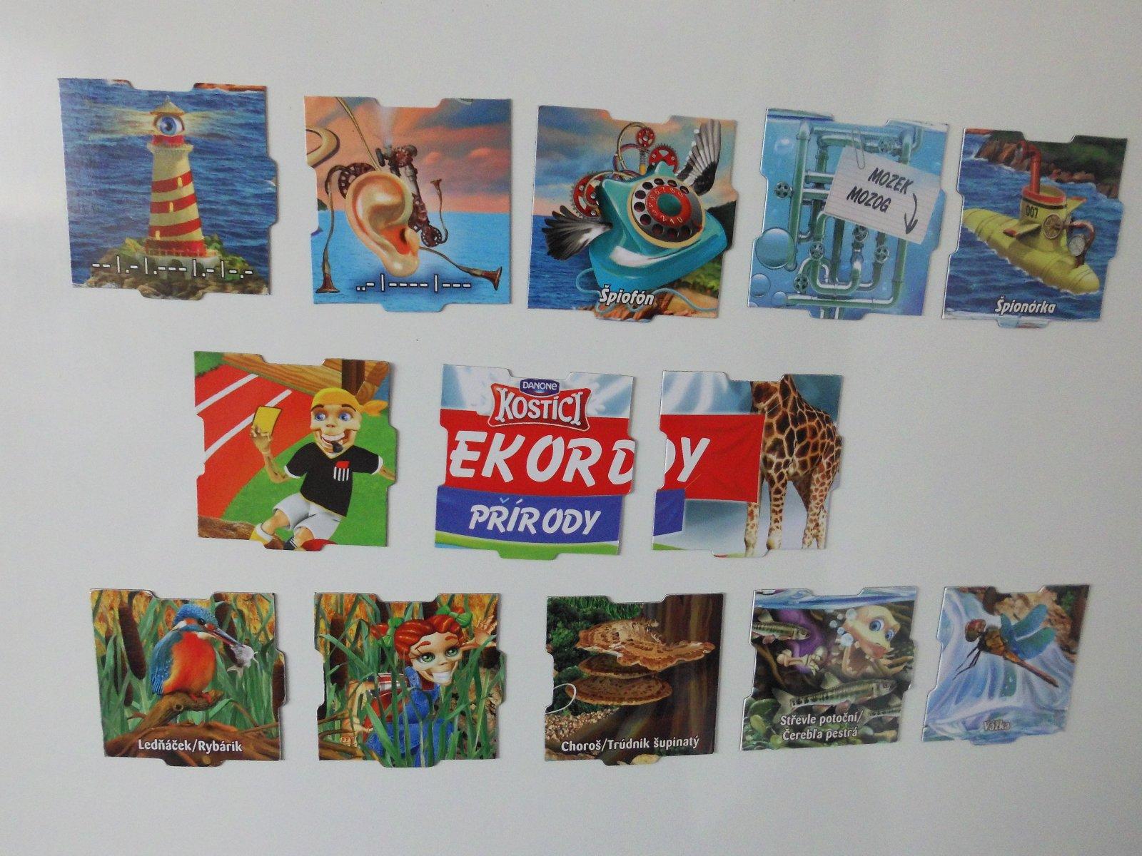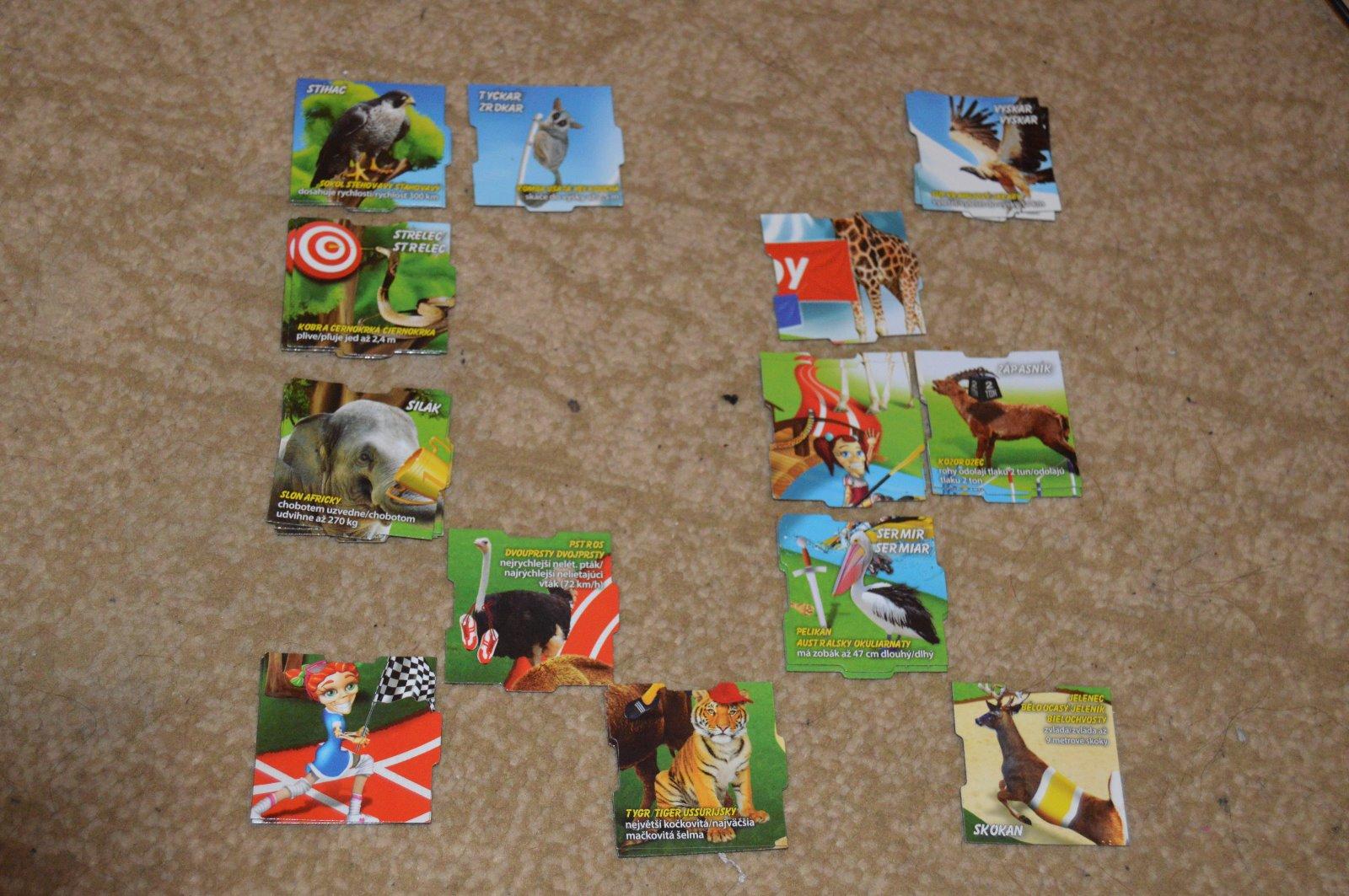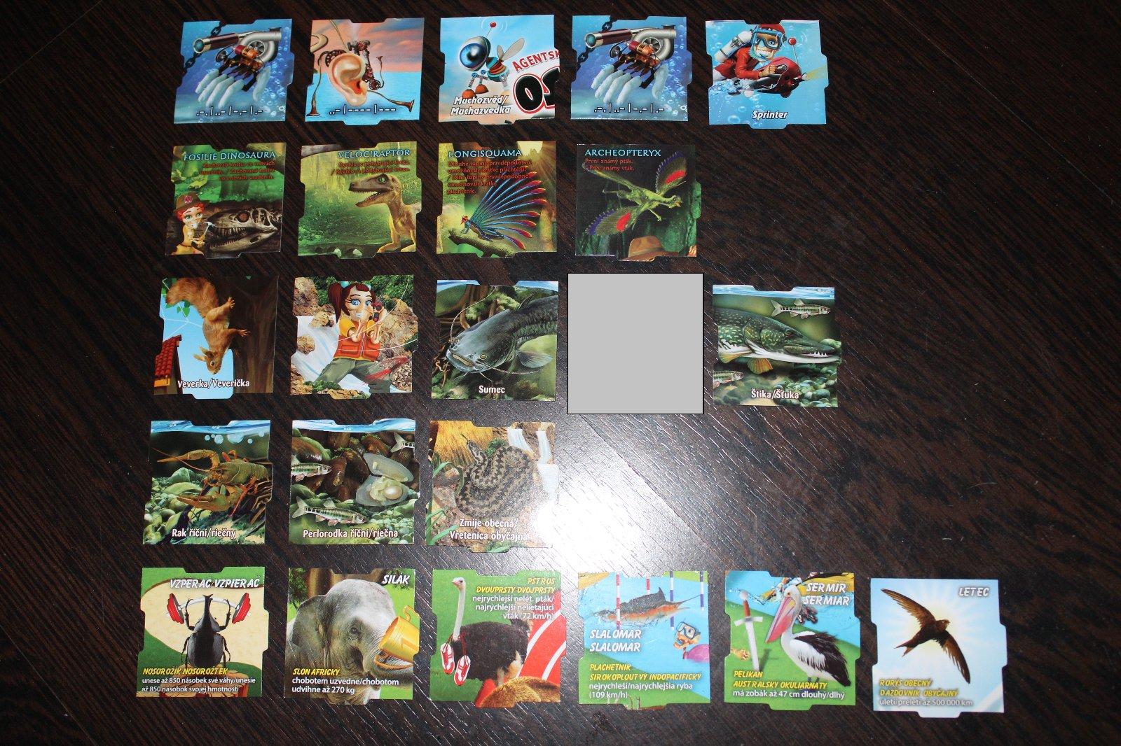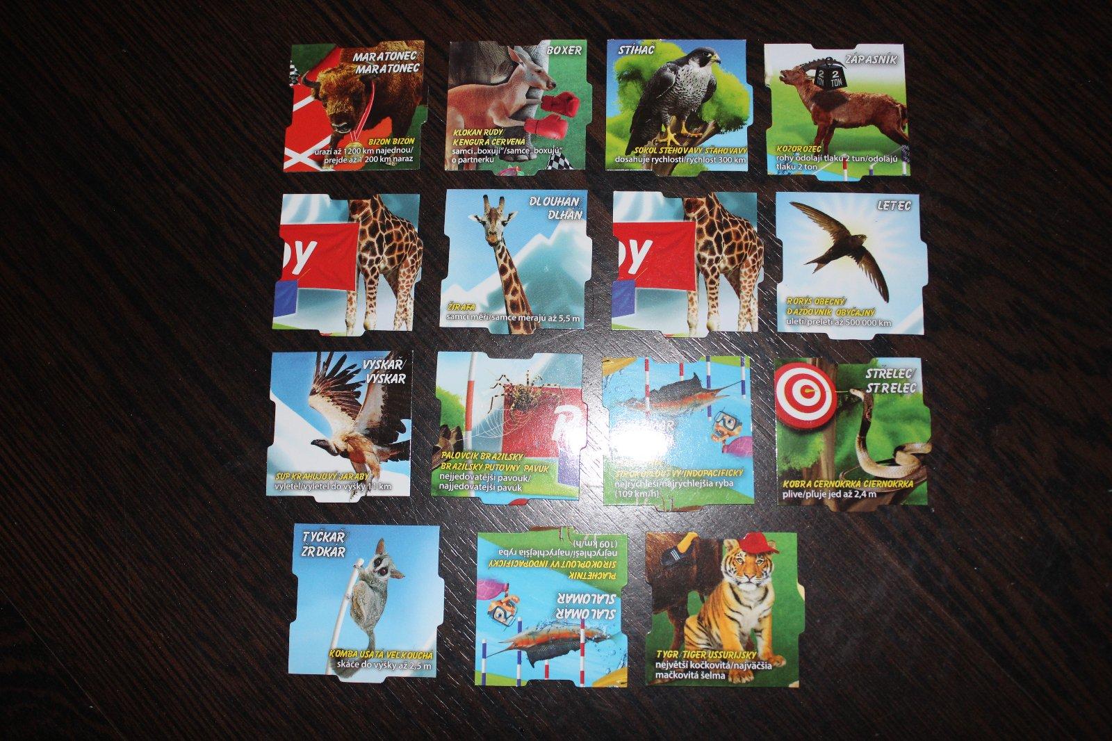 Rekordy prírody : 1- stíhač, 2- tyčkár, 4- dlháň, 16- Boxera/klokan, 17-pštros, 21- Kostička so zástavou .