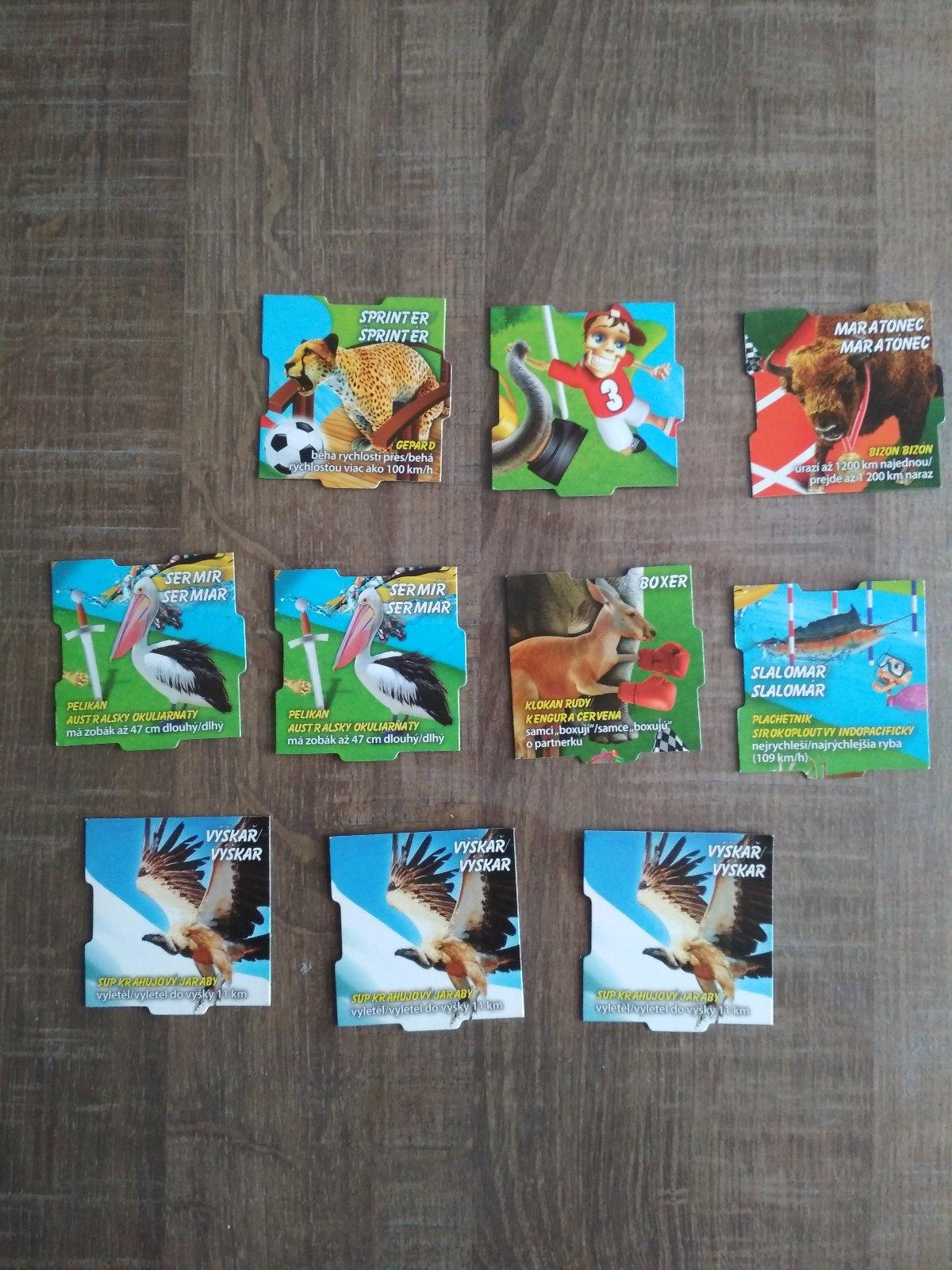 Rekordy prírody : 1- stíhač, 2- tyčkár, 16- Boxera/klokan, 17-pštros, 21- Kostička so zástavou .