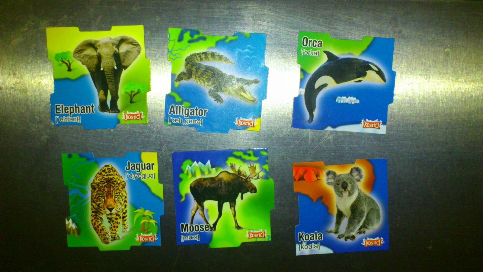 z mapy zvierat mam jelena, leva, kralika, kondora a velrybu. Vymenim za starsie magnetky z Kostikov alebo za nalepky Animal Kingdom