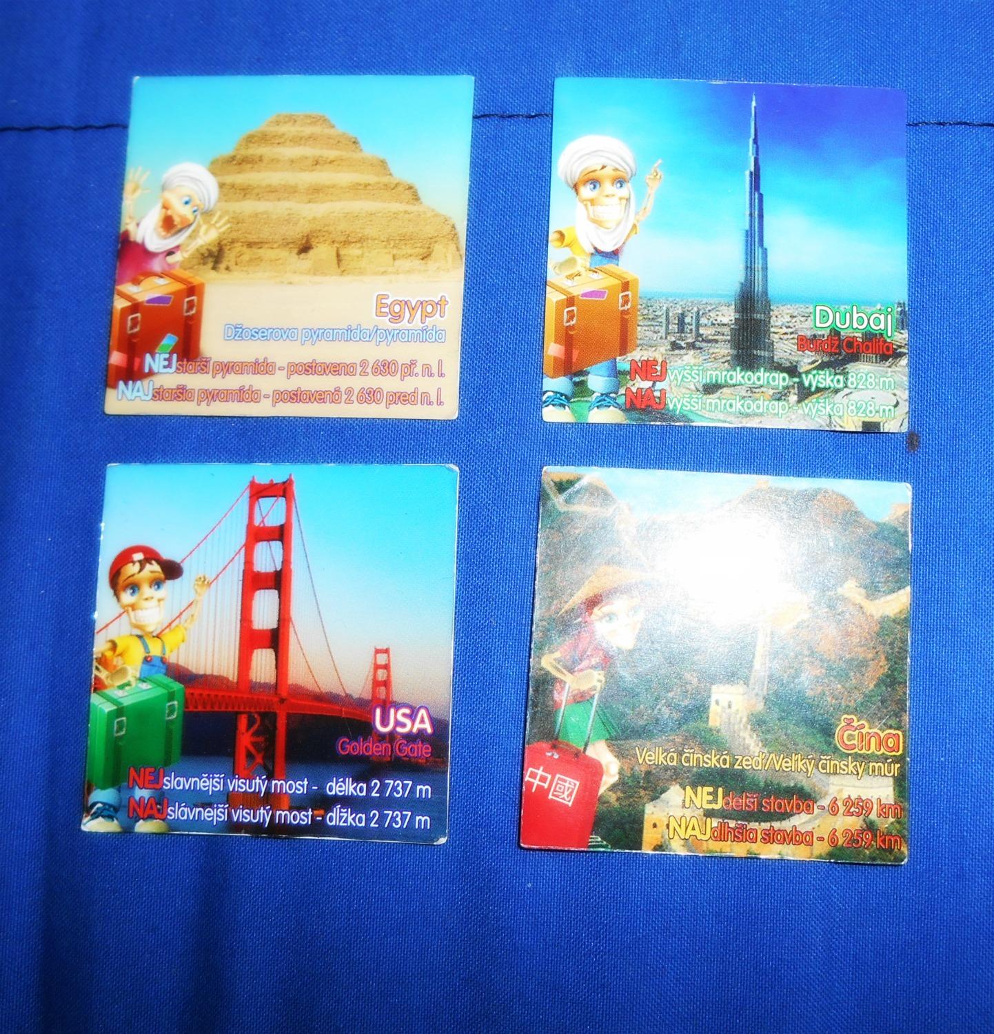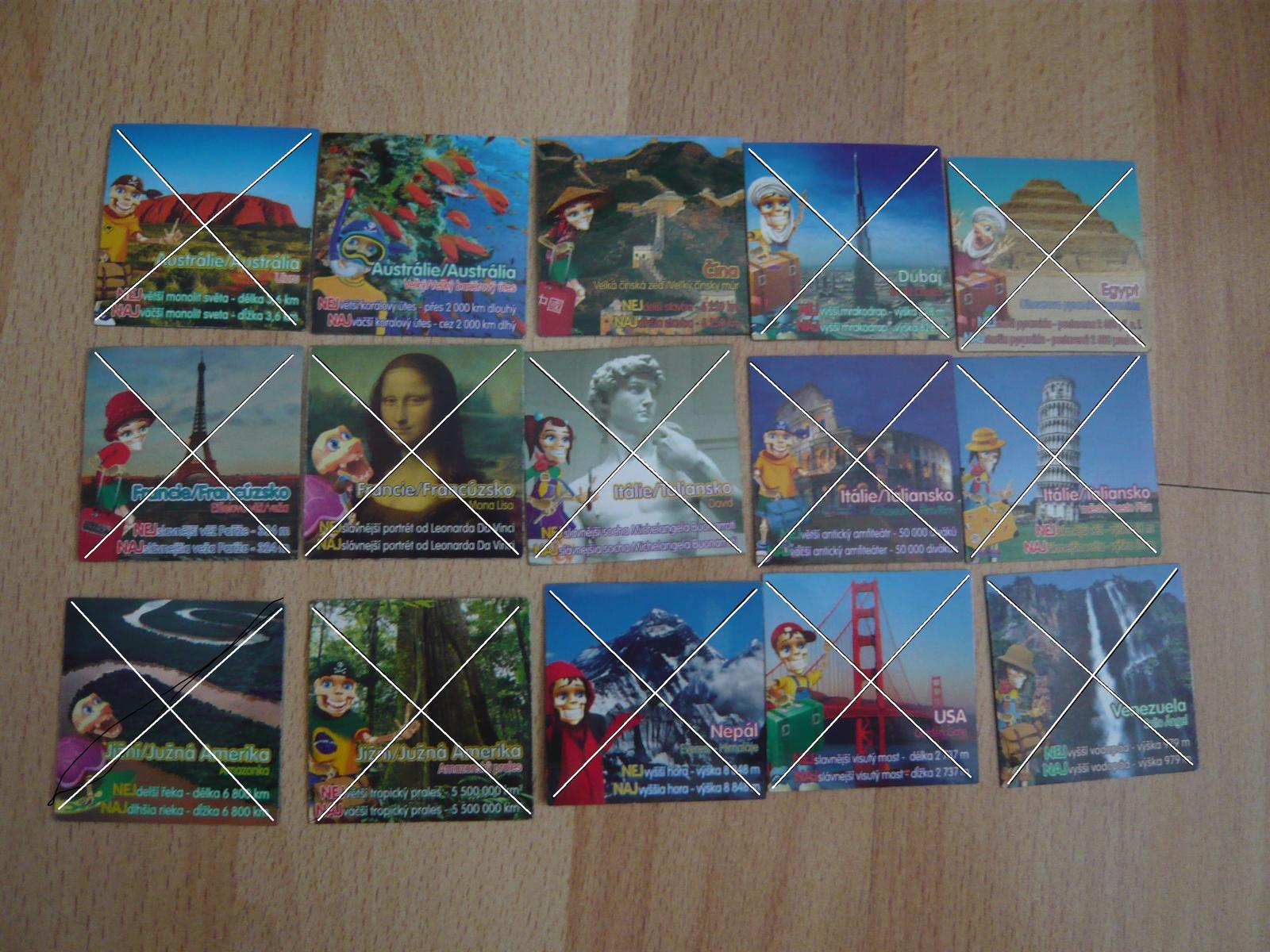 @nebicko43 Ahoj, kamoske by som vedela ponuknut střelec, kozoroh, velryba (je to ceske, neviem ci boli vtedy aj SR) a z mliekarne 1,4,10,12,13. My potrebujeme z tych rekordov co su na foto c.2: Australia -monolit, Australia -utes, Dubaj- marakodrap, Egypt-pyramida, Francuzsko-veza, Juzna amerika-prales, Nepal-hora, USA-most, Venezuela- vodopad. Este nam toho teda chyba dost:( Diki za odpovet🙂