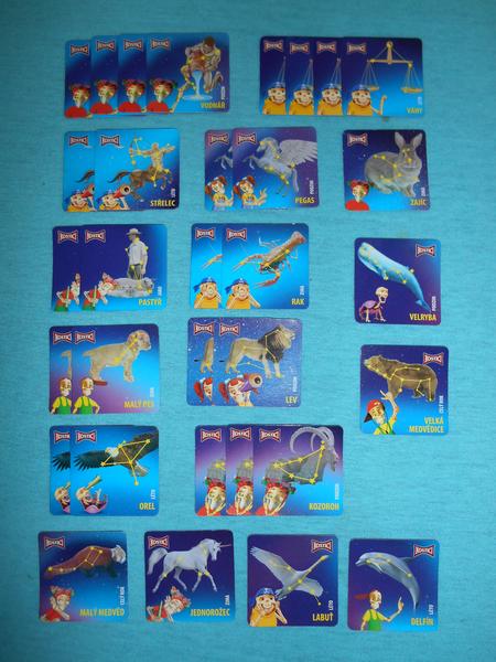 Ahojte, kamoska zhana piratsky poklad c. 13 ( hvezdicky - modre, zelene a cerevene ), suhvezdia Beran a Jednorozec. ta druha kamoska zhana mliekaren c. 5, 6, 8, 9, 11, 15, 16. aj postavicky z lidl Stikeez.