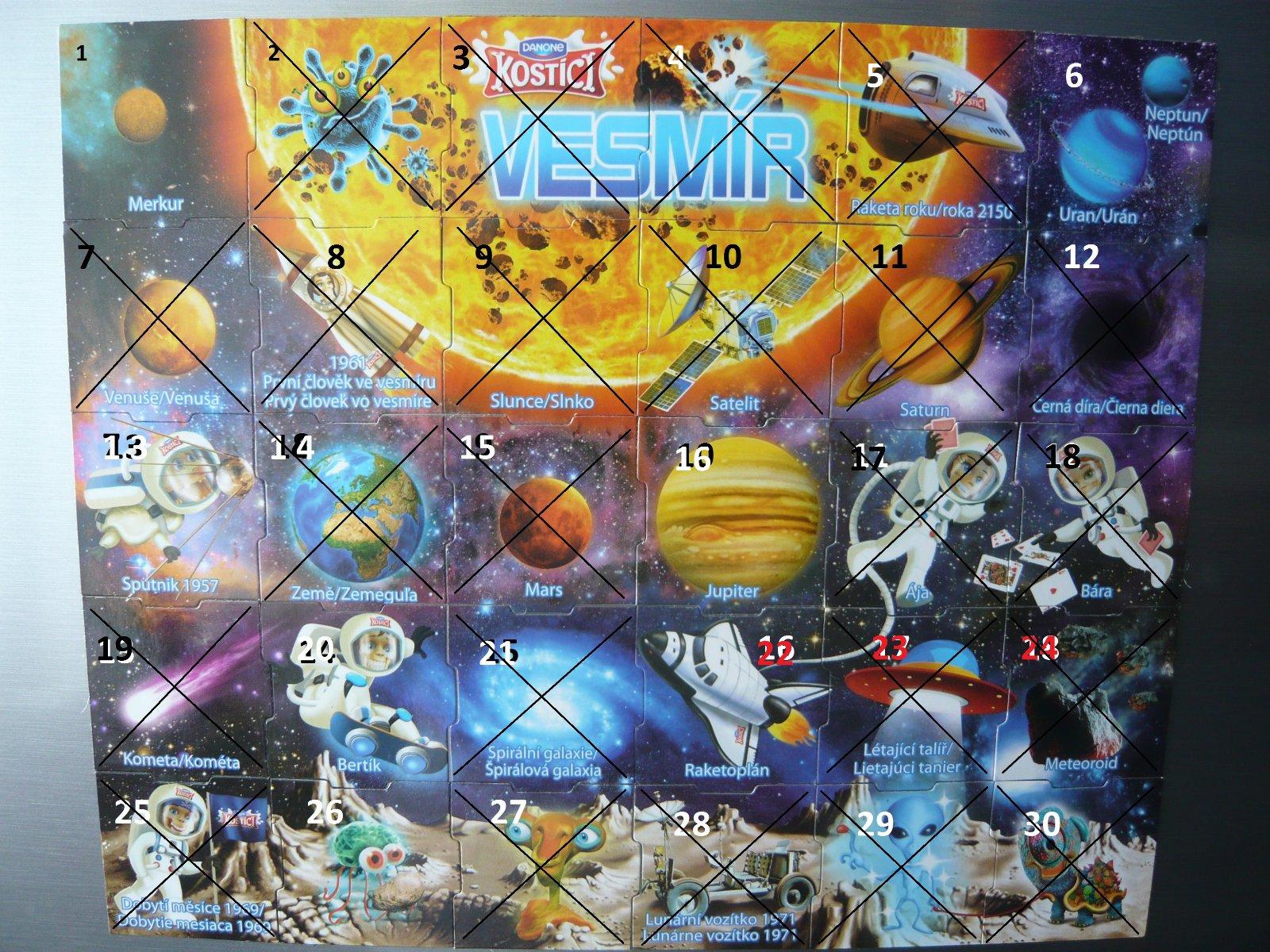 chyba nam este z vesmiru 1, 10, 11, 20, 21, 24, 27, 28, 30 a na vymenu mame 14, 15, 22, 23, 26, 29.