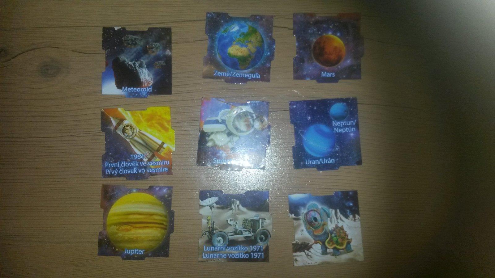 vesmir: Zem, Spiralova galaxia a posledna karticka - dolny rad uplne vpravo - nejaky mimozemstan.