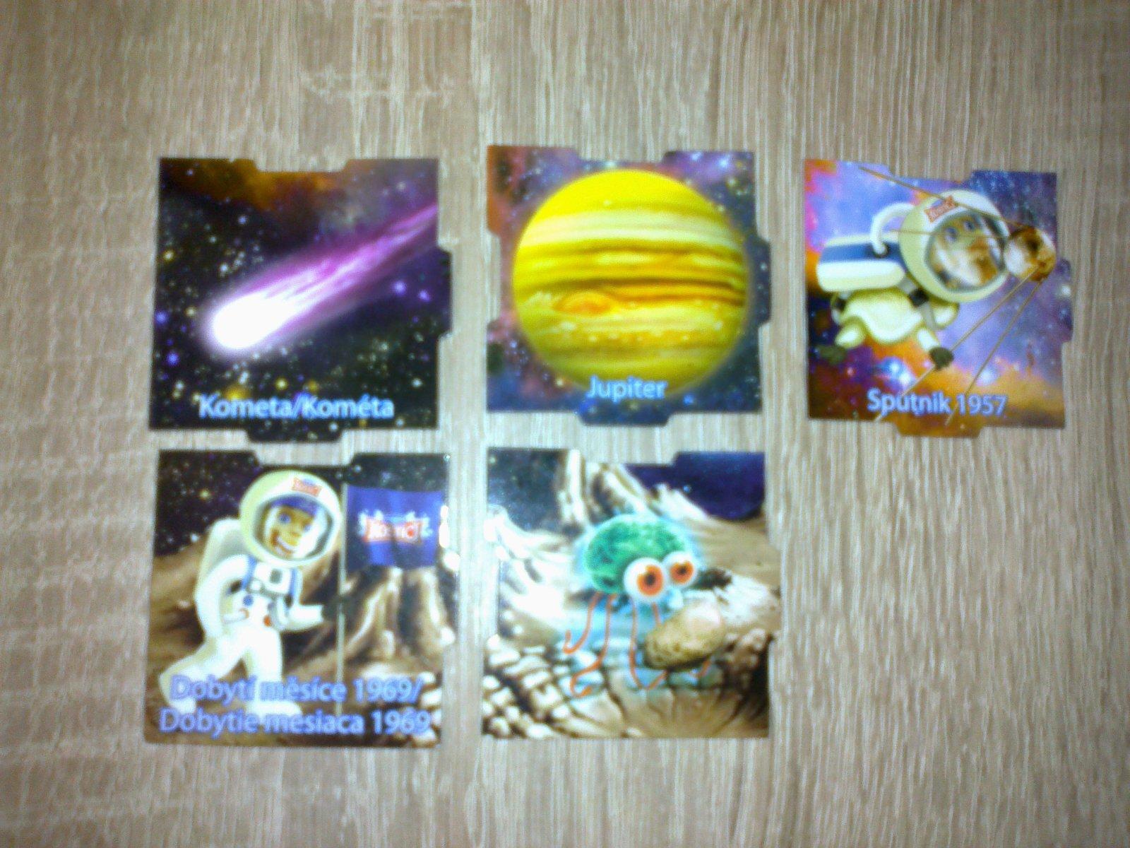 Slnko (teda pise na nej slnko), Raketoplan, Lietajuci tanier, Spiralova galaxia, Merkur, Korytnacka.