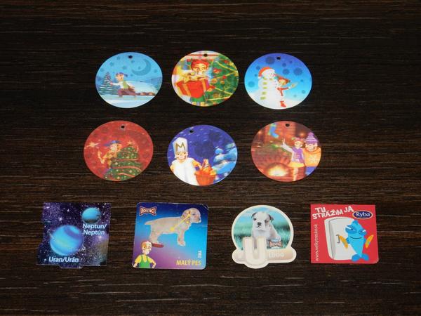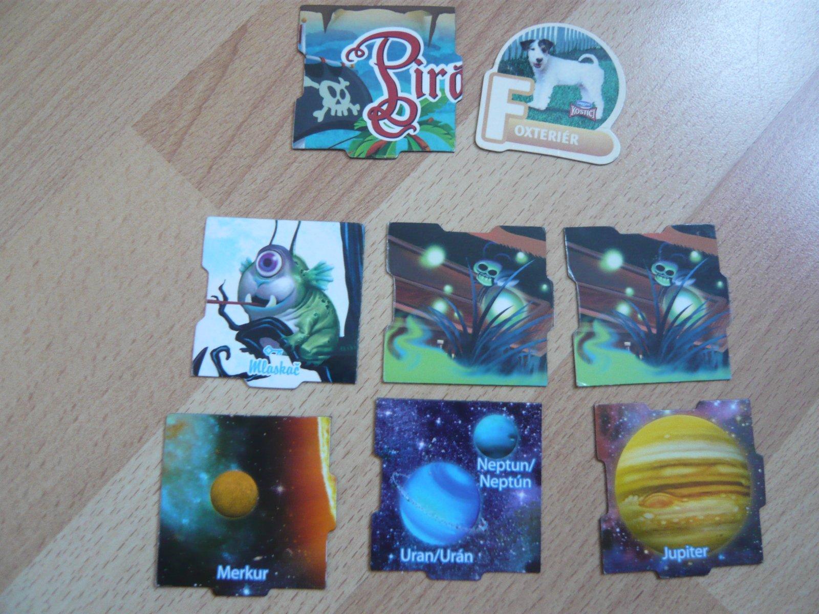 Zdravim. Zo serie Vesmir zhanam nasledovnych 5 magnetiek: Merkur, Saturn, Aja a dve priserky z posledneho riadku - predposlednu zlava aj zprava (zelenu, resp. modru s velkymi ocami.