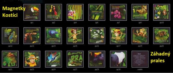 nové magnetky z pralesa (okrem Liany, Chameleona a kostíkového chlapca bádateľa)