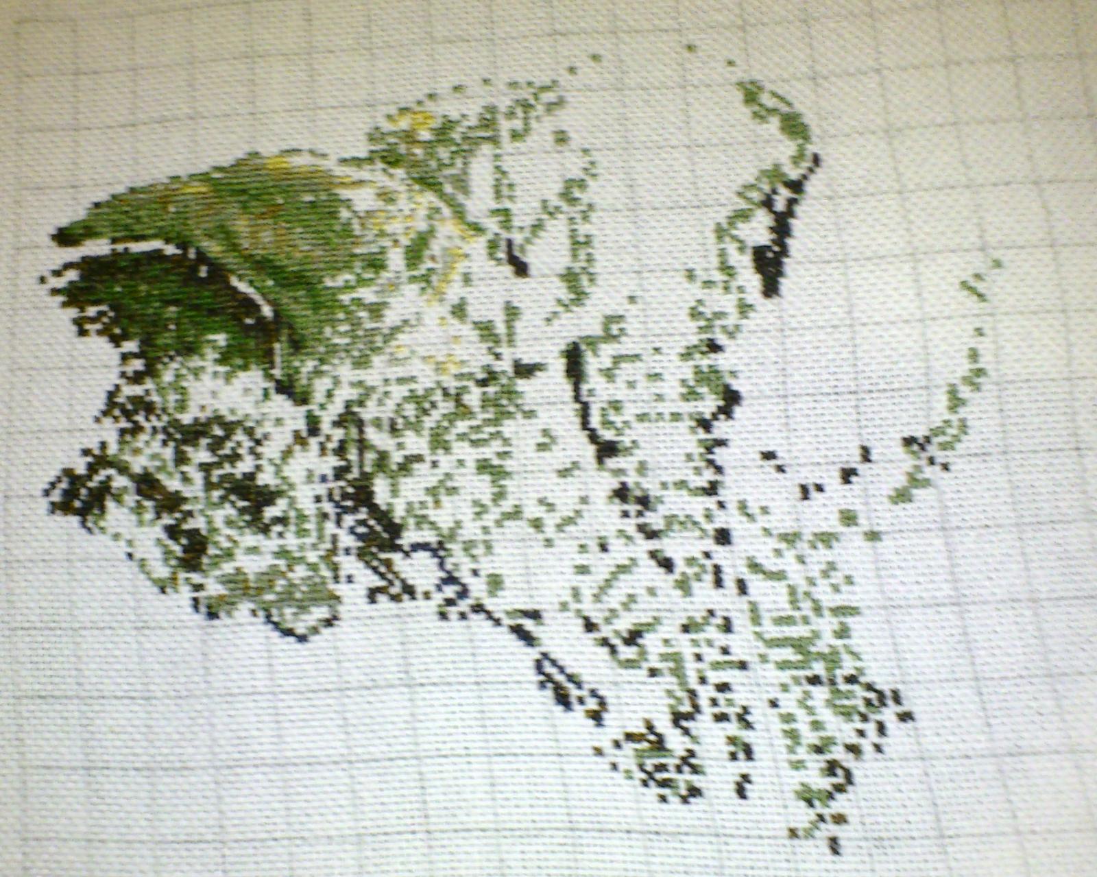 dělám si předlohy sama, i když je velký rozdíl nechat počítač vytvořit předlohu a pak se u milionu odstínu nezbláznit nebo si ji udělat poctivě ručně s milimetrovým papírem a citem pro barvy.... Teď momentálně bojuji s 3-mi slony: