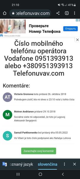 @janai1 ešte raz. Ak je tam uvedené také číslo, ok. Ale je to ukrajinské číslo. Ak by ti volalo takéto číslo z Ukrajiny, neukázalo by sa ti tak, ako ho vidíš na tej stránke, ale by sa ti ukázalo v tvare predvoľba krajiny a potom číslo a zrejme by ti ukázalo aj krajinu, aspoň mne to ukazuje. Ak jej volalo číslo ako písala, je to obyčajný slovenský mobil. Netreba hľadať senzáciu tam, kde nie je. To, komu patrí to číslo, nie je jednoduché zistiť.