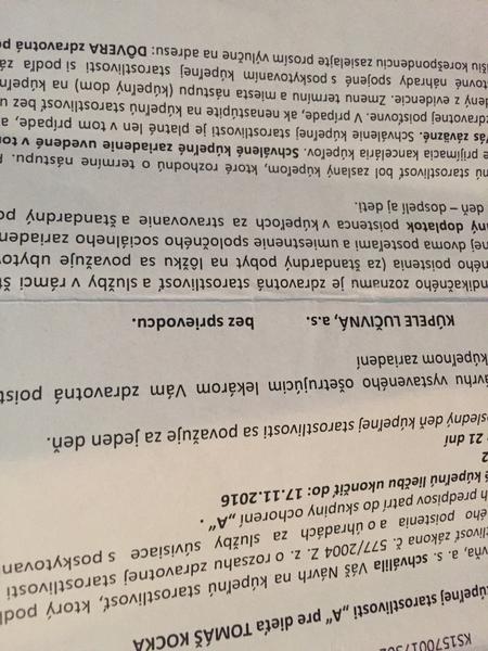 @maruska360 červenou ani riadok, na oznámení o schválení mám vpravo hore svoju adresu, potom text o tom, že schválili, číslo indikácie, trvanie 21 dní, forma ústavná, do Lučivnej, termín najneskoršieho nástupu, na druhej strane doplňujúce info o štandardnom ubytovaní, strave a procedúrach, že budeme PLK uhrádzať za služby súvisiace s poskytovaním kúpeľnej starostlivosti, ak nie sme oslobodení od povinnosti úhrady a info o liekoch, pečiatka podpis