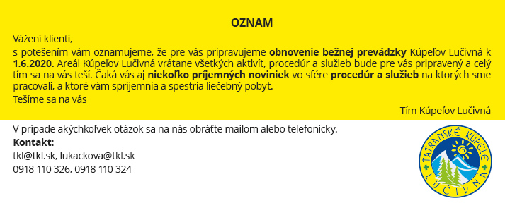 ...už je oznam na stránke tkl.sk: ....neprijímajú nových kúpeľných hostí do odvolania.