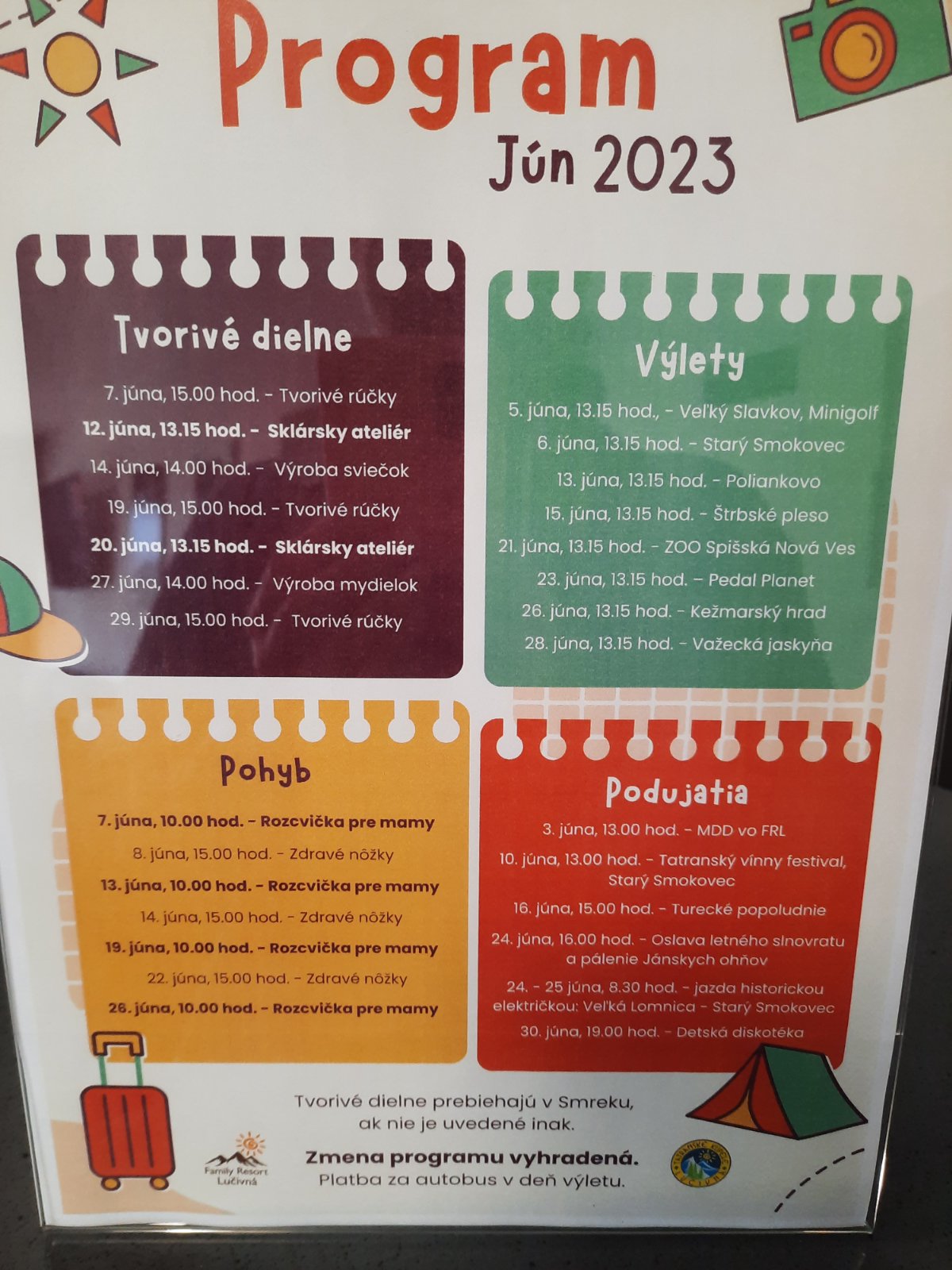 Ahojte,prosím vás už je zverejneny program na jún?Nastupujeme 8.6. A aké je tam prosím pocasie?