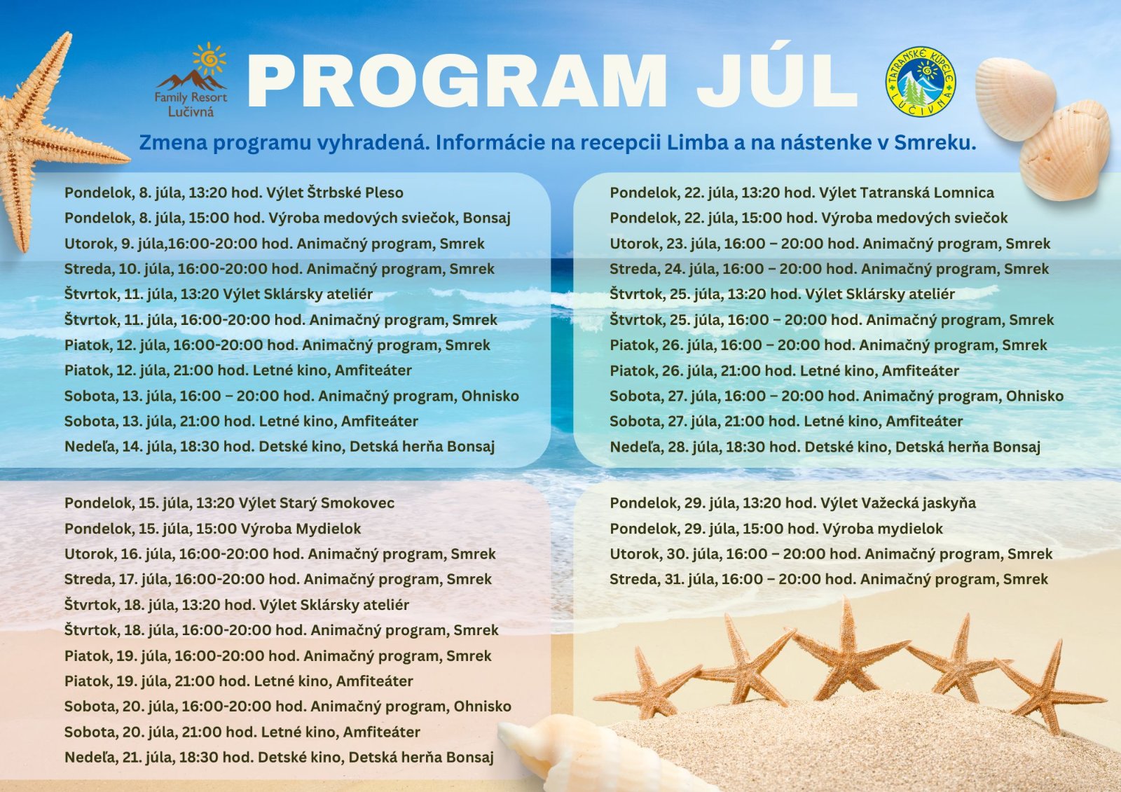 Maminy dobrý deň, prikladám Vám program akcií v TKL na júl 2o24 ... snáď sa nudiť nebudete .. 👏