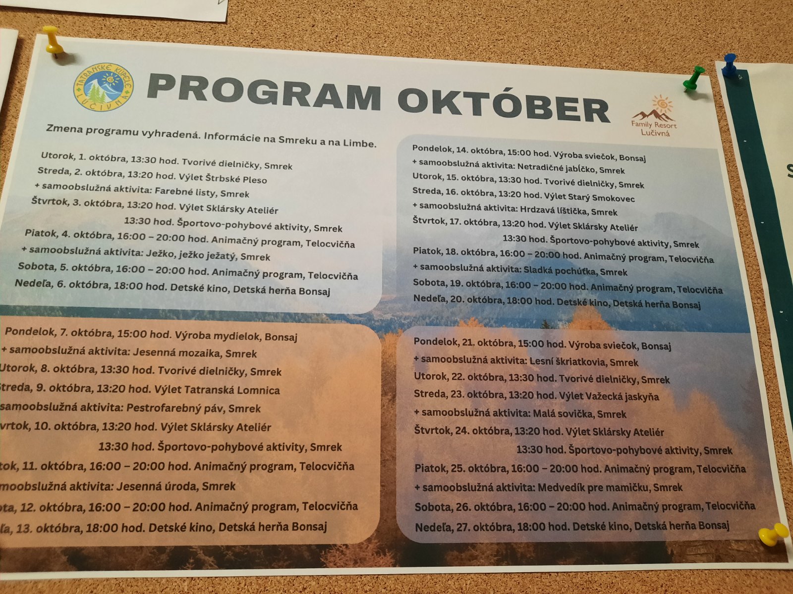 Prosím vás, program na október vie niekto pridať? Ďakujem