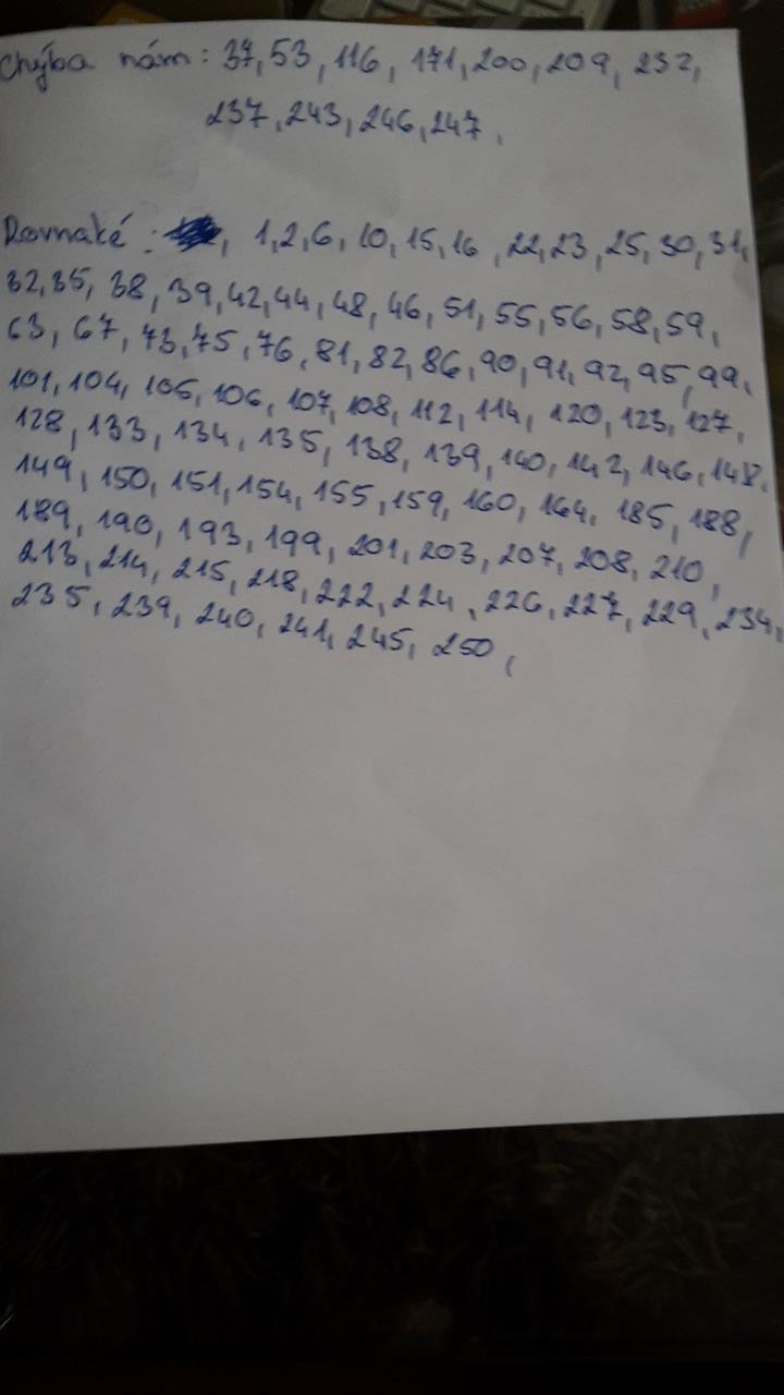 Takze ak som dobre odkontrolovala my mame pre vas 66 a 80 a nam chyba od vas 27,41,216,244