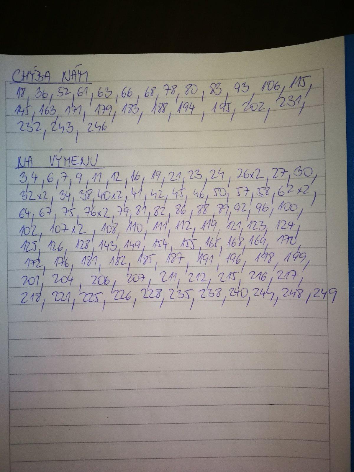 Ano kludne napiste ktore mate na vymenu a ake vam chybaju...