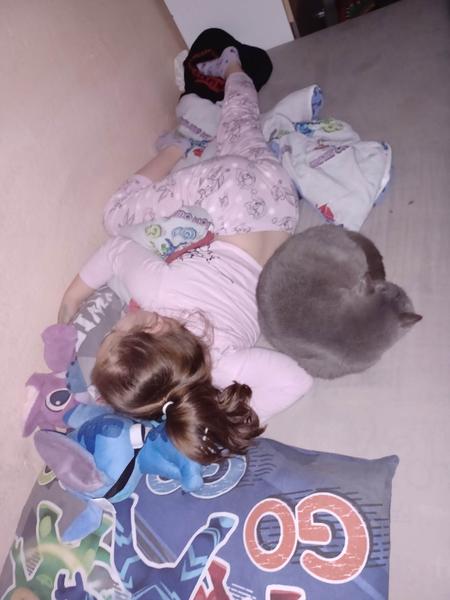Pritom Murko robí toto, aj keď ho ona nemusí, on si ľahne tak ako si ľahol keď bola maličká aby nepadla z postele ♥️😁