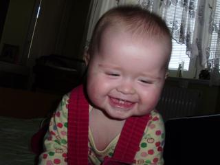 Sarah je tiež riadne ukecaná. Stále si niečo nové vymýšľa. Teraz si brnká po perách a vydáva pri tom zvuky-neviem ako to pomenovať 🙂 , bozkáva nás no a konečne snáď začne štvornožkovať. Zdvihne riť a hodí sa do predu 😀 Ešte nepochopila, že sa musí aj na rúčky zdvihnúť.