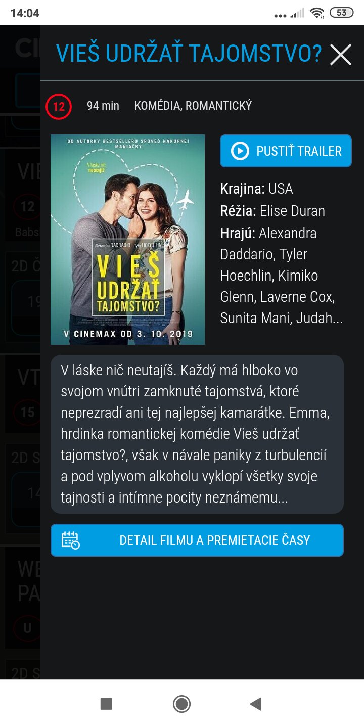 mám k dispozícii 2 lístky pre dve ženy na zajtrajší film Vieš udržať tajomstvo? Lístky si treba vyzdvihnúť do 18:00 a film začína o 19:00 h v Bory Mall v Bratislave.