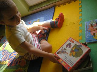 vcera sme mali to sedenie, nic specialne sa neudialo, ale mame zacat s kartickovym systemom, len tak na skusku, ci sa nieco nepodari. aspon na nejake zakladne veci, lebo on si nepyta ani jest, ani pit. tak pofotim, dam vytlacit a uvidime... dost pochybujem, ze sa chyti, lebo on podla mna nechape spojitost medzi autom v telke v rozpravke, doma v obyvacke - hracka, nalepka na stene alebo realne auto vonku.