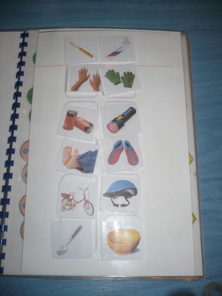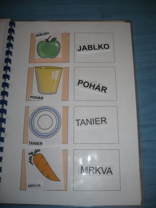 Takže zistiť úroveň ak dieťa nepriradí obrázok k predmetu nie je ešte na úrovni obrázkovej. Prvá je predmetová, potom fotky, piktogramy farebné, piktogramy s pomenovaním slova, piktogramy čiernobiele, text. Smeruje to k tomu, aby časom dieťa fungovalo len na nápisoch ako napr. my v diári.