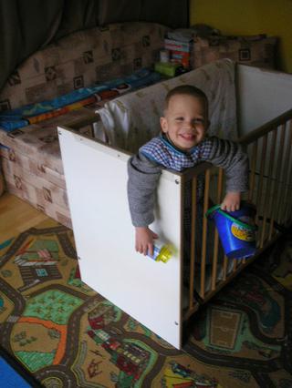 okrem pojedania všetkého možného (cez nite, šnúrky, molitany, paplóny-to už sme všetko odtsránili, Malý teraz spí ako posledný zločinec v cele, nemá paplon, ani vankúš, už ani plachtu a matrac má remeňmi priviazaný o postieľku, aby ho nezjedol a postieľku má remeňmi priviazanú o skrine 🤐 😝 ) až po nenormálny bordel... 😝 🙄 🙄 🙄