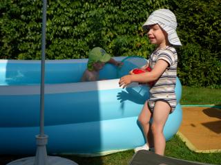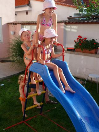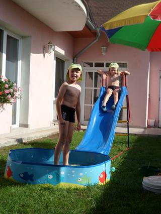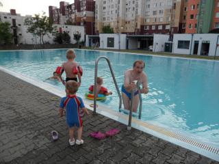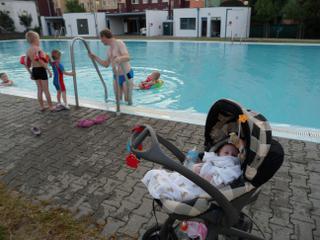 Malinký si tam spinkal v sedačke a my ostatní sme sa "plahočili" vo veeeelikom bazéne...