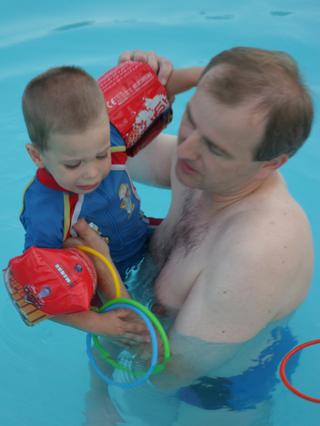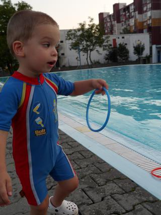 potom si vzal do ruky také krúžky a tie nám hádzal, alebo si ich točil a bol spokojný už aj on (a aj my vo vode) 😵