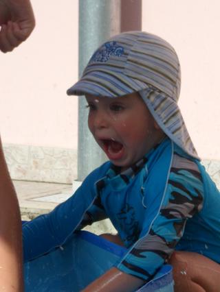 to je záber, ktorý odhaľuje jeho úžasnú radosť (z prskajúcej vody, čo ho chalani prskali, lebo sa mu to páčilo) a zároveň aj úžasný strach (tiež z prskajúcej vody, lebo sa toho aj bál)...