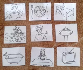 my měli, když byl malej, jenom takovýhle základní kartičky, a bohatě to stačilo.... 😉 pak, jak už rozuměl, tak nebylo třeba...ale u dětí, které mají problém s porozuměním, tam se to dá využívat fakt hodně dlouho a spoustu věcí tam přidávat 😉