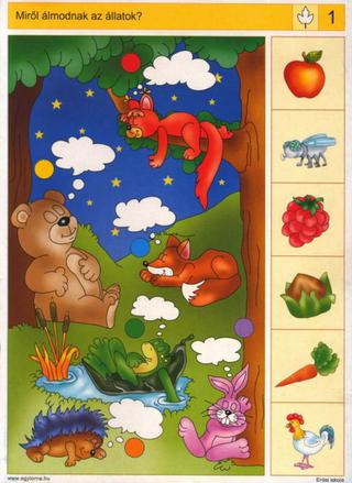 Našla som niečo na tej madarskej ale neviem tu stránku sem dat, prečo? Len fotky som zitahla.... na prvom je úloha: ktorá kresba chýba z obrázku?, druhý obraz čo tam patrí a tretý obraz ako by si dokončila radu?