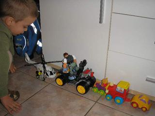 a vláčiky sme mu rozložili, že snáď ho to zaujme, ale skončilo to rovnako, ako s autami,