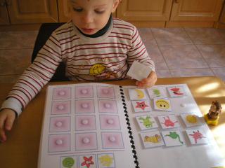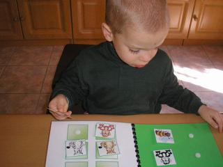 pekne pracujete tvoj maly sa zda byt pri praci taky kludny,a sustredeny,my mame velke problemy zo sustredenostou,dokola s nim trenujeme pozornost obrazky,ukazovanie,farby,a on sa nedokaze chvilku sustredit na obrazok,je to strasne,pri praci mi teraz place som zufala.Pracovat sa pyta,ale potom dostane take nervy,ze skrabe,vykrikuje.Ale napr.s terapeutkou to tak neroby ako so mnou doma.Ja len dufam,ze sa to nejako upravy po MB12,teraz sa jeho stav dost zhorsil asi nam uz posobia neziaduce ucinky z MB12,tak mame zvysenu hyperaktivitu,stale je nervozny,trucovity no hroza.Manzel vravy aby sme to prestali davat,ale ja to nevzdam,snad sa nam to upravy....