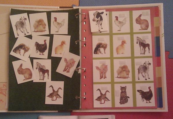 vo vypredaji som kupila dva rovnake kalendare a na tej uplne poslednej strane bol prehlad zvieratiek zo vsetkych mesiacov. Oba listy sme zvlast zalaminatovali - ten jeden (napravo) sme nechali komplet akurat do neho vyrazili dierkovacom 4 dierky na uchytenie do sanonu a nalepili sme na kazde zvieratko samolepiaci suchy zips -tu jemnejsiu cast. Ten druhy zalaminatovany list z kalendara sme rozstrihali (pekne ten laminat drzi aj bez "okrajov") nalepili nan hacikovu cast sucheho zipsu - to su tie zvieratka nalavo. Do kusu koberca sme dierkovacom vyrazili dierky na uchytenie do sanonu a nan sa pripevnia tie povystrihovane zvieratka. Ulohou je priradit zvieratko zlava na identicke napravo.