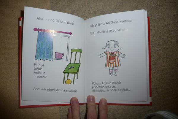 Alebo: dnes som sa buchla do staršieho syna postele, a on: och, mama, ukázal na hlavu , potom na bratovu posteľ a povedal : Ajo ( to je v preklade Marko- jeho brat) . Takže som pochopila z jeho prejavu: och mama, buchla si sa do Markovej postele. No a ja som mu to musela po ňom akože " preložiť do slovenčiny " tú jeho neverbálnu komunikáciu a povedať: áno, buchla som sa do Markovej postele. On si to veľmi prísne vyžaduje, aby som povedala presne to , čo má na mysli, len mu to nejde vysloviť. Akoby používal moje ( alebo naše) ústa na svoju reč, lebo jemu to nejde. Ale z jeho prejavu vacšinou na 98% vieme, čo chce povedať. Ak neuhádneme, tak zúri, ak vystihneme jeho myšlienky, tak je veľmi veľmi šťastný a usmieva sa a je spokojný. Toto bol len príklad. Takto to u nás funguje non- stop už vyše pol roka. A čím ďalej , tým vac a viac. Preto som z neho niekedy trošku unavená, lebo on je všade a všetko " pomocou našich úst" komentuje. Nedá sa mi ani ísť na wc, a o sprchovaní možem len snívať. Stále sa tešime keď zaspí a nastane ticho 😉 ( ja sa nesťažujem, za toto som šťastná, len som to chcela nejako zhrnúť s vašou pomocou, aby som to mohla nejak definovať) neviam ako sa tomuto, čo on robí a ako si to vyžaduje, hovorí.
