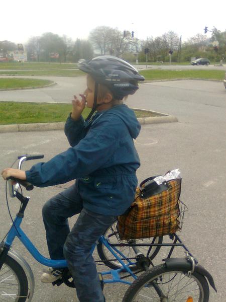 Maťkovi sme nedávno kúpili na inzerát väčšiu trojkolku, lebo na klasickom bicykli neudrží rovnováhu. Muž ju namaľoval a skrášlil, chodíme na nej na prechádzky po našej štvrti. Dnes sme vyskúšali aj nákup v Bille, zvládli sme aj semafóry. A Maťko nám nákup odviezol domov. Máme veľkého pomocníka 🙂