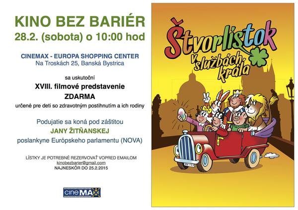na ďalšie predstavenie „Kina bez bariér“ do Banskej Bystrice dňa 28. 2. 2015 (sobota) o 10.00 hod.