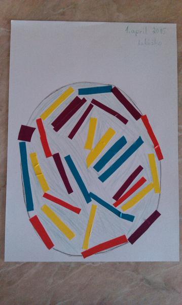 Prajeme Vám všetkým krásne Veľkonočné sviatky, plné pohody, lásky a veľa veľa zážitkov drobcom. (Včerajší Lukáškov výtvor, moja pomoc len pri nakreslení vajícka a strihaní farebných nalepovacích pruzkov. Ostatok krásne zvládol sám - nalepoval uplne sam, vymaloval sam bez mojej pomoci, ako nalepil, kde nalepil som nechala nanho). Aj toto je pre mna ako rodica pokrok.