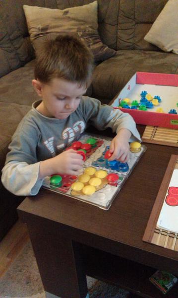 Aj takto u nas vyzeraju aktivity, v poslednom case badam, ze uz ma ma "plne zuby", tak podla toho ako bude môcť susedkina dcéra (má strednú pedagogickú a teraz študuje VŠ pedagogickú) k nemu chodiť a uvidím ako si na ňu zvykne. Zajtra o 10:30 príde prvýkrát, máme v pláne tak 2krát do týždňa že s ním bude sa hrať so zameraním na niečo.... "Podáme hlásenie" ako sme na tom.