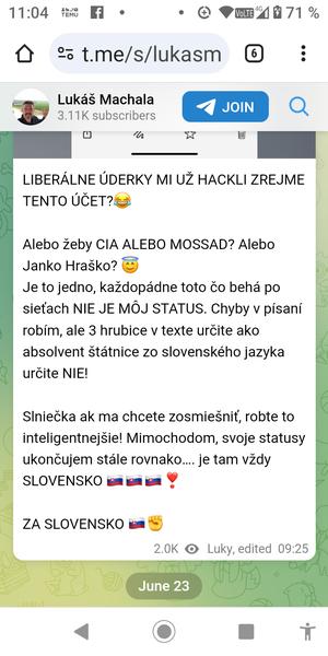 @eva8 Či tri, či štyri, Machalov účet na Telegrame je aj bez toho výlevu riadna žumpa (ale hlavne je potrebné oháňať sa, ako média a opozícia šíria nenávisť). Keby pán Machala menej chlastal, nemusel by sa trápne vyhovárať, ako mu slniečka nabúrali účet a spravili z neho hlupáka. Lebo tento plochozemec to bravúrne zvláda aj úplne sám.