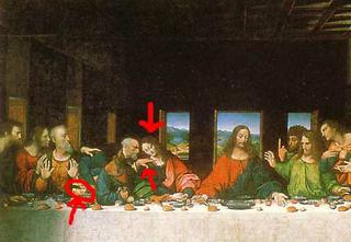 všimli ste si ten nož v červenom krúžku?toto cirkev odmieta že by v tom bola žena ale myslím si že bola a oni to nechceli dopustit preto ježiša odstránili a ktovie ako to bolo s nou ☹