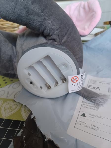 Spievajúci sloník - bez krytu na baterky- bez 2 chýbajucich plieskov na kontakt s baterkou - prekvapenie za 4.90 mi prišlo rúško - tak som bola milo prekvapená- nikdy viac tento eshop