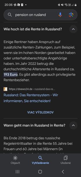 @tundra ok, pridavas sem frazy na urovni 6. rocnika zs tak podme debatit v realnych datach, nie v intenciach ruSSkej propagandy o fantastickom zivote dochodcov v ruSSku. Uvedomujes si, ze statny dochodok v ruSSku je na urovni 20 dolarov- aj to musis mat stastie, v mnohych pripadoch nedostanes nic. Tiez pises o dochodku vo Svajciarsku, kde su ludia nauceni byt zodpovedni sami za seba a tvorit si z nadstandardnych prijmov rezervy v sukromnych dochodcovskych fondoch. Nasledne si ten dochodok uzivat podla svojich predstav- napr. Aj v ruSSku. To co uvadzas ty je nejaky statny minimalny dochodok v Svajciarsku.