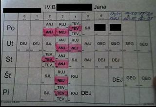 @janka_a to mi trosicku pripomina moj maturitny rozvrh... tiez som z neho bola hotova... ale teraz na vyske je to trosku horsie... ja mam skolu dva tyzdne a potom tri tyzdne volno.. a takto trikrat a nieje to bohvieco od rana do vecera byt v skole a ked prides domov, tak sa este starat... uzi si ho... ked nejdes na vysku, tak je to tvoj posledny rozvrh... 🙂